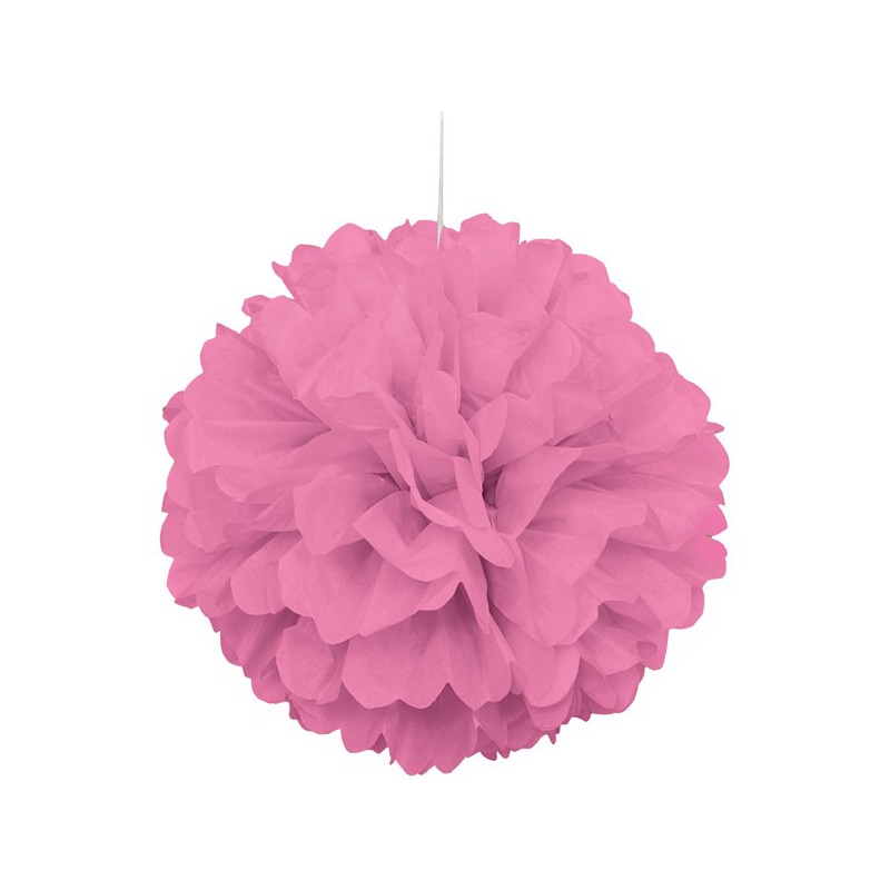This beautiful hot pink fluffy decoration is perfect for a yellow coloured party theme or simply to complete your party decoration tableware with a yellow touch. Can be placed hanging from your ceiling or just placed on your table. Made in paper, is shipped flat and is easy to assemble, simply unfold the ball and manually separate the layers.