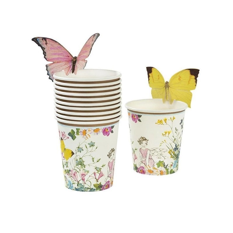 These Truly Fairy paper cups are every little birthday fairy’s dream! Featuring a beautiful floral fairy setting design, these cups come with pink and yellow butterflies to attach to the top of your cups, adding an extra touch of magic. Complete your Fairies themed party decoration with other articles from the same range.