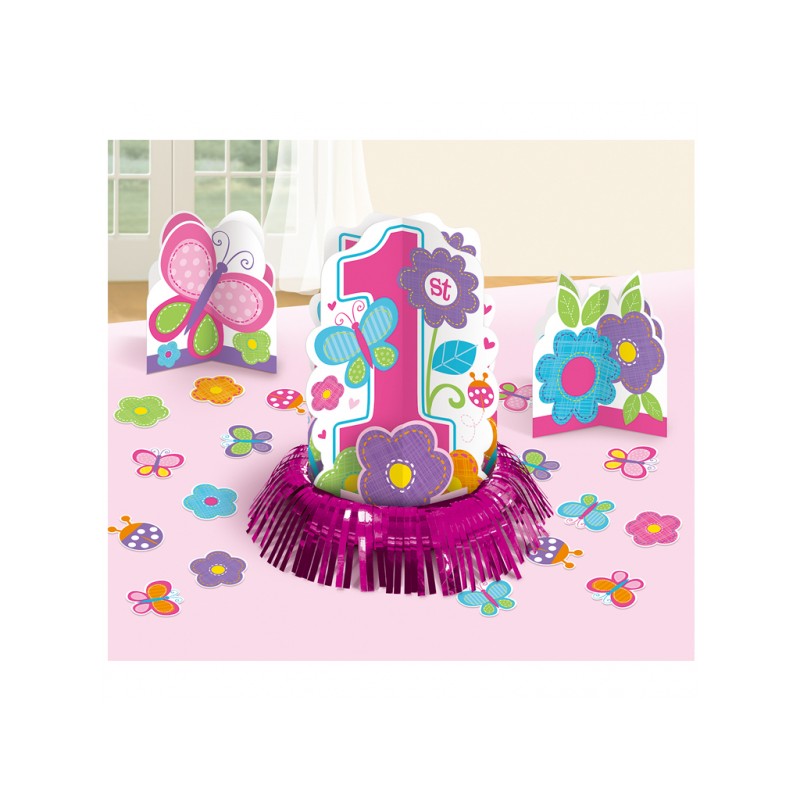 1 First Birthday centerpiece and foil fringe base (32 cm)