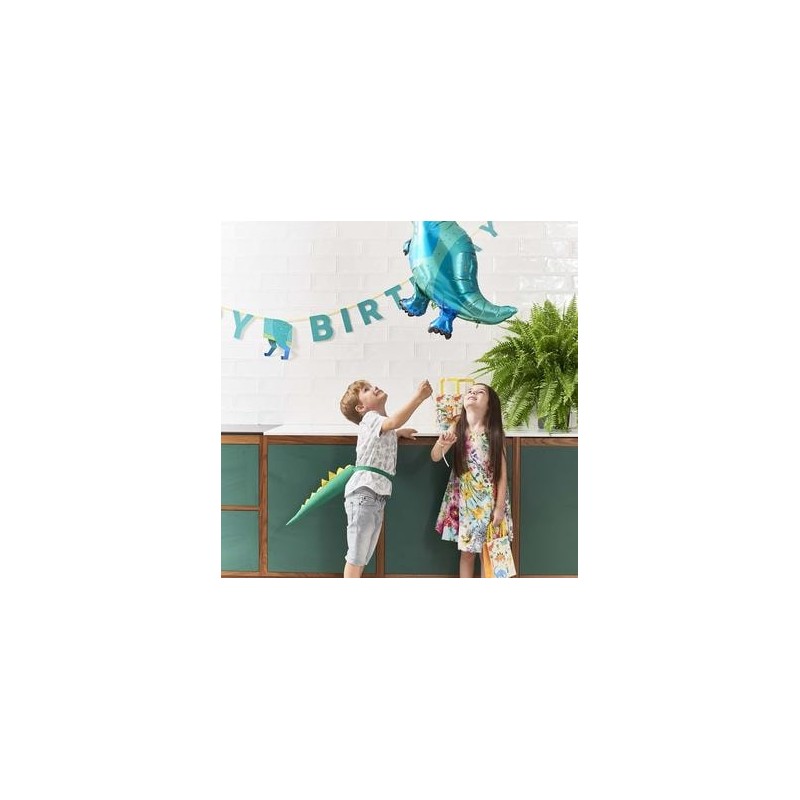 This Dinosaur SuperShape Foil Balloon is perfect to decorate Dinosaurs themed birthday parties! (It is sent flat). Comes with an inflating straw and 2m of ribbon.