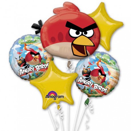 Angry Birds Party theme foil balloon bouquet for kids birthday party. Great to surprise the child on the morning of his birthday and than add to the party decoration! Must be inflated with helium to have the bouquet effect. (It is not sent inflated).