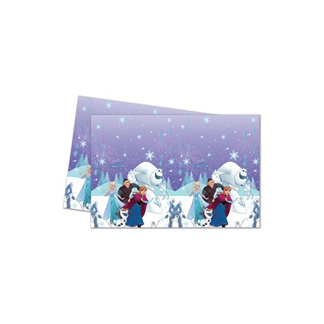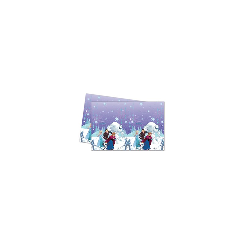 Frozen Snowflakes plastic tablecover featuring Elsa, Anna, Kristoff and Olaf for Frozen themed kids birthday parties! Combine with other Frozen articles to an amazing decoration!