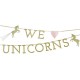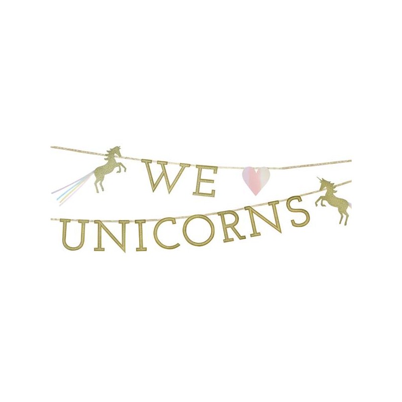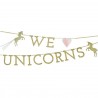Fill your Unicorn themed party with magic with this wonderful pink and gold shinny garland with the message"We love Unicorns"! Golden glitter and the beautiful unicorns with rainbow colors tail are a special touch to your decoration!
