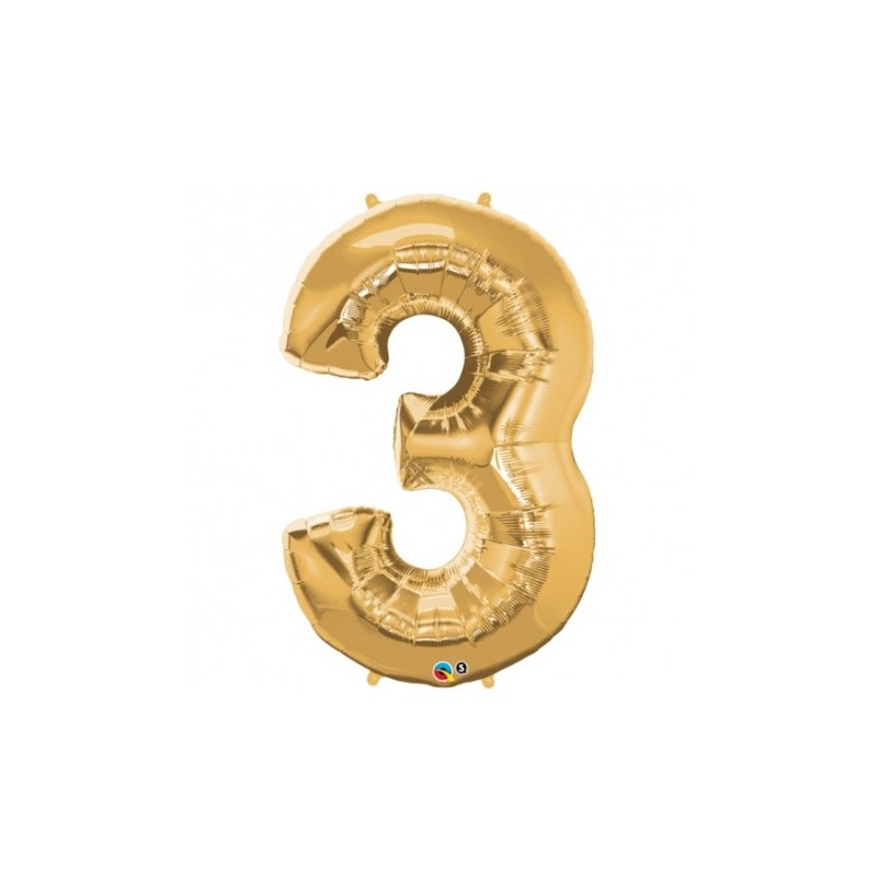 Number 3 gold giant foil balloon. (It is not sent inflated).