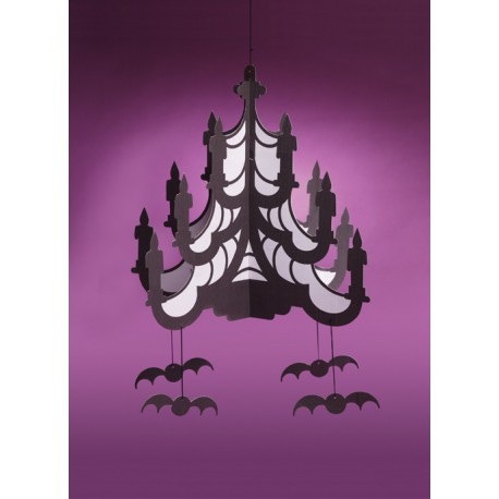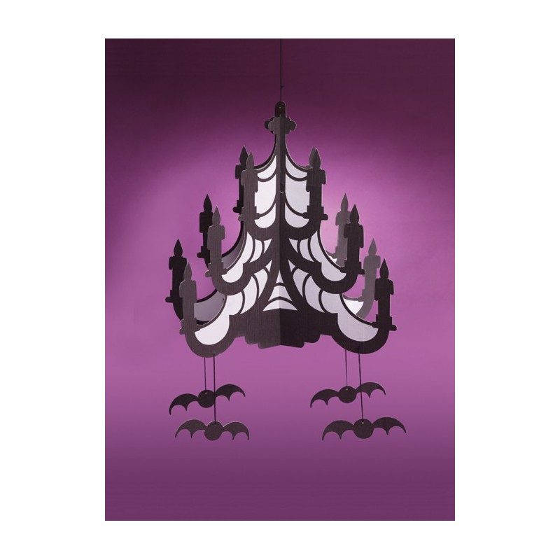 Perfect for creating the right atmosphere for the Halloween party! Chandelier black cardboard with hanging spiders.