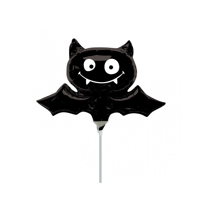 Black Bat Minishape Foil Balloon. This is an air filled balloon, that should be fixed to a balloon stick in order to be easily handled by the children. (It is sent flat)