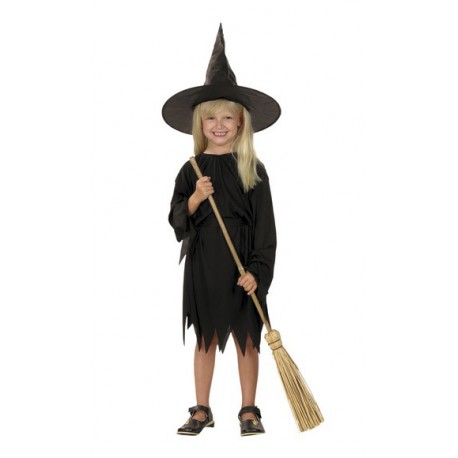 Black Witch costume for kids on Halloween and Carnival parties. Contains hat and dress with belt. Broom is not included.