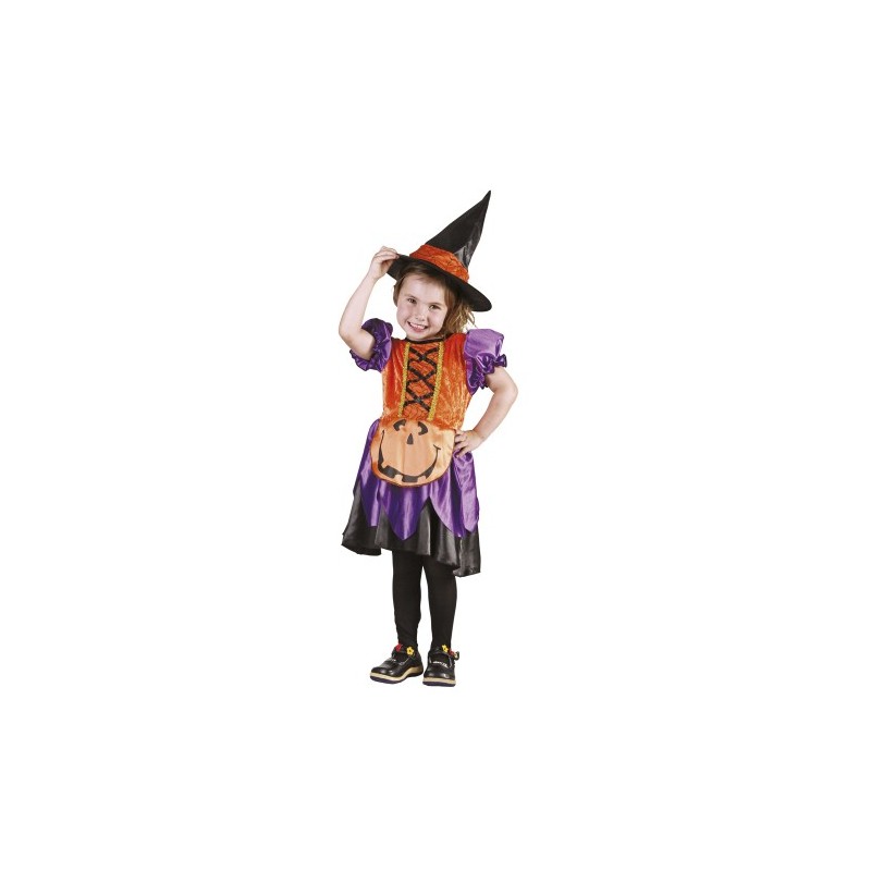 Cute and funny purple and orange Little Witch costume for toddlers on Halloween and Carnival parties. Contains hat and dress.