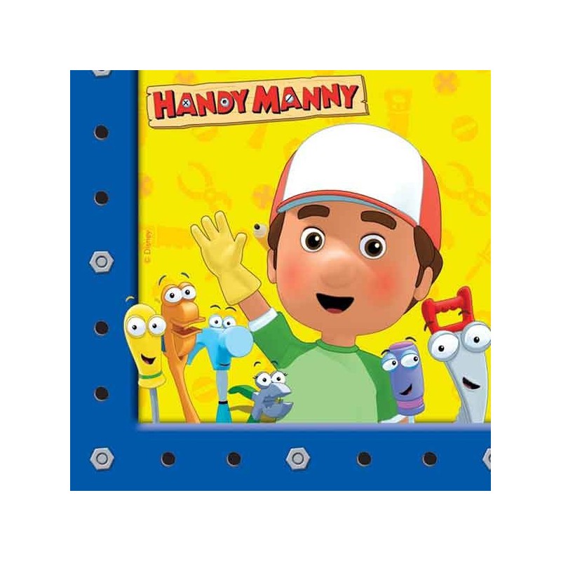 Handy Manny Party theme lunch napkins for kids birthday party. Combine with other Handy Manny theme items, blue and yellow cutlery and balloons for a perfect decoration!