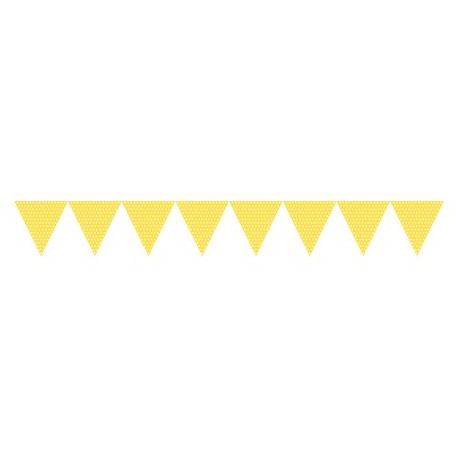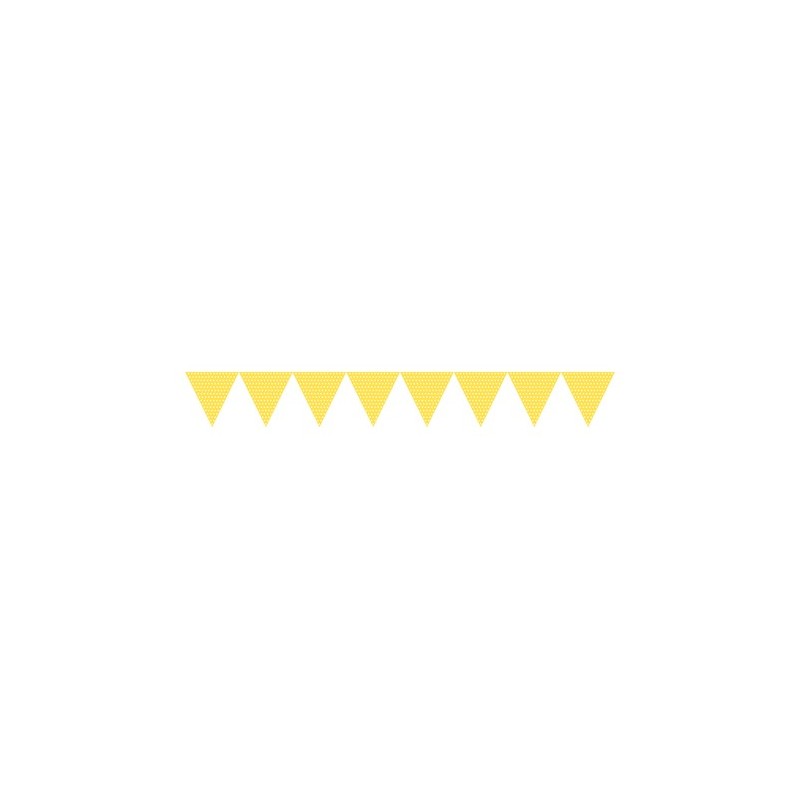 Adorable yellow dots triangular flags paper banner. The flags are united by a cotton ribbon.
