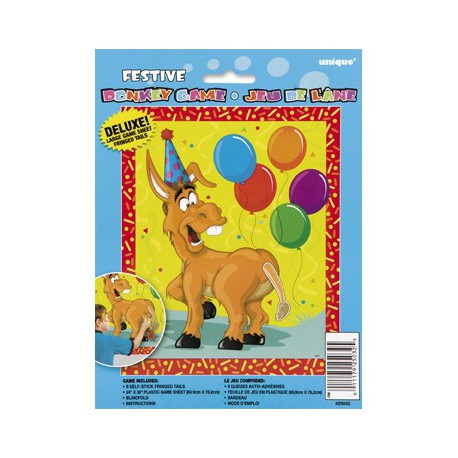 Great to entertain children during the party! Put the tail on the donkey game is a traditional and funny game that will be great in your party! Includes 1 poster, 8 stickers and a blindfold.
