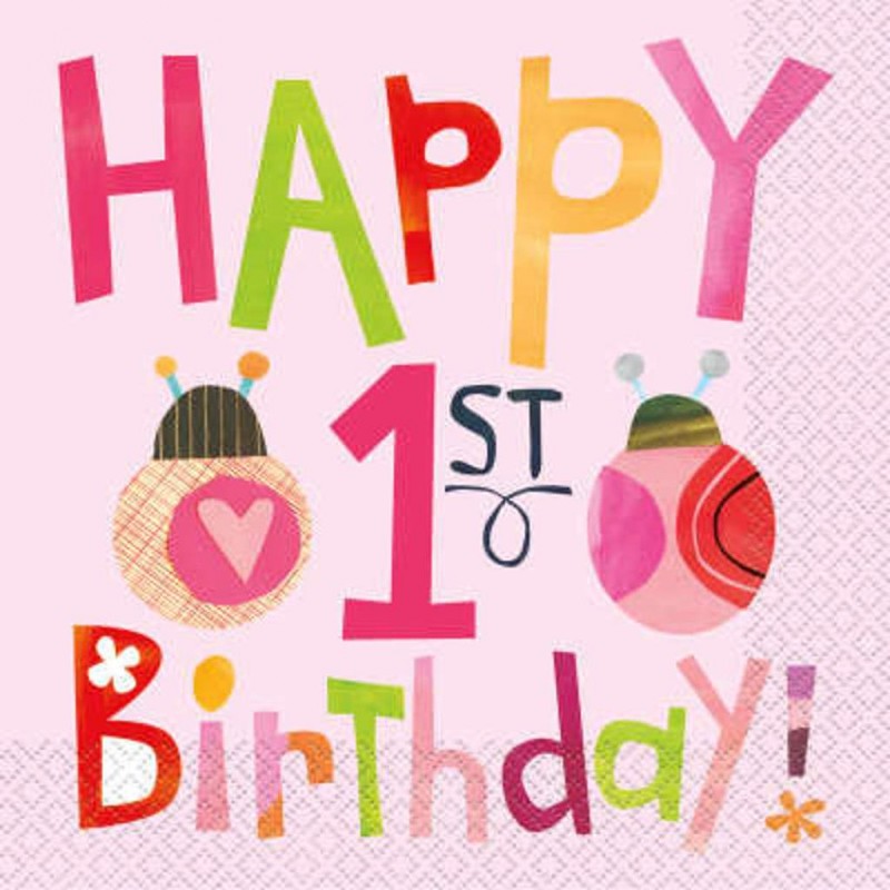 Ladybug First Birthday paper napkins for girls first birthday party. Combine with other articles from the same range and accessories in pink, yellow, red and orange solid colors for a perfect decoration!