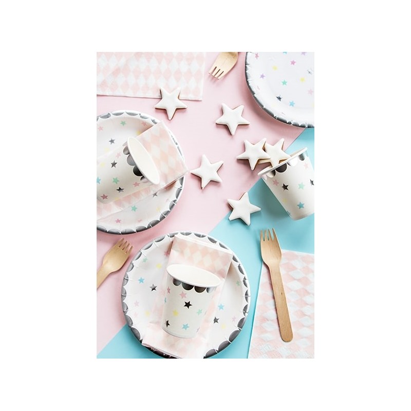 These light pink diamond print paper napkins are simply adorable for baby showers and girls birthday parties. Perfect match to "Make a Wish" party range! Complete the decoration with pastel pink accessories and decoration.