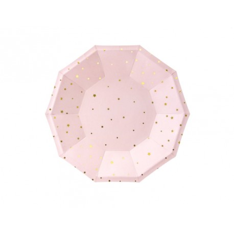 Adorable Light Pink and Golden Stars Dessert Plates. Match to other tableware and decoration in gold and pastel pink colors to create your own decoration.