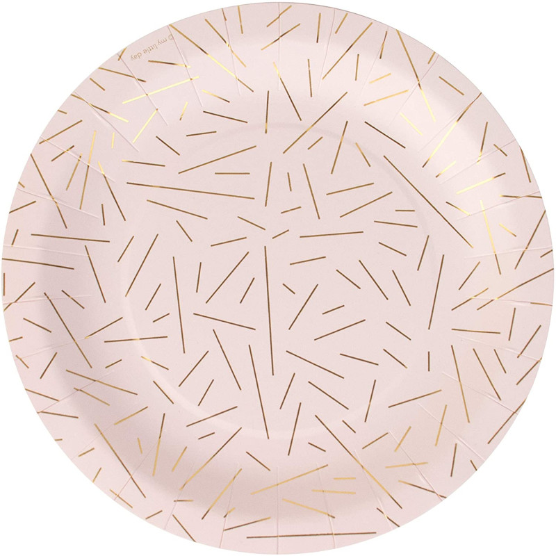 Adorable Light Pink and golden rays paper plates. Pair them to other golden rays tableware and articles in gold and pastel pink colors to create your party.