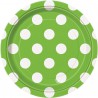 These beautiful green dots plates are perfect for a green coloured party or simply to complete your party theme decoration tableware with a green touch. View also our many other plain coloured tableware, balloons and decoration products.