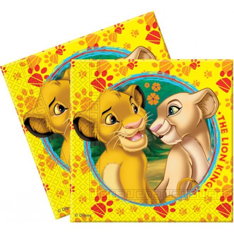 The Lion King birthday party theme paper lunch napkins for kids birthday party. Combine with other Lion King theme items, orange and yellow cutlery and balloons for a perfect decoration!