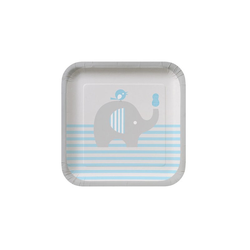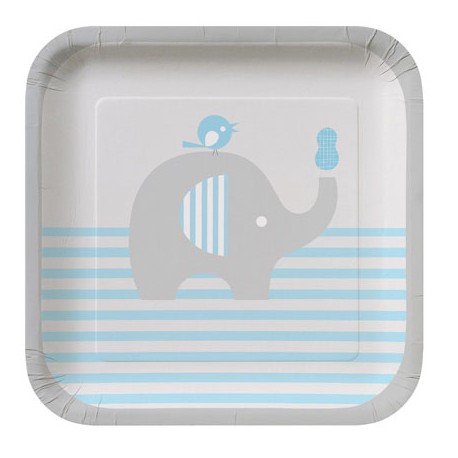 Lovely and elegant paper dessert plates from Little Peanut Boy Party Supplies for baby shower parties.
