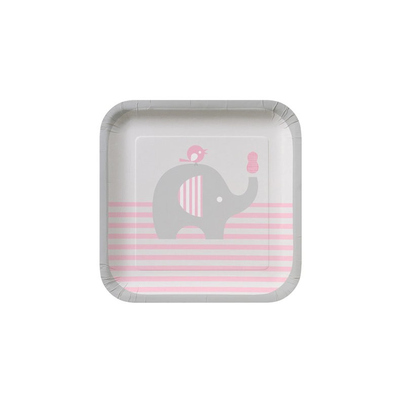 Lovely and elegant paper dessert plates from Little Peanut Girl Party Supplies for baby shower parties.