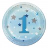 These light blue paper dessert plates features a number 1 and blue, silver and white little stars are perfect for serving the cake on boys first birthday parties! Match to other Little Star articles and light blue and gold accessories.
