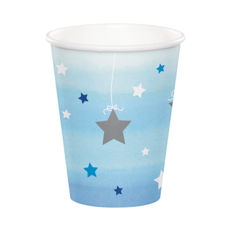 These light blue paper cups featuring blue, gold and white little stars are perfect for little boys birthday parties! Match to other Little Star articles and light blue and gold accessories.