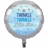 This "Twinkle Twinkle Little Star" blue and silver foil balloon is, alone or with other balloons forming a bouquet, perfect to decorate the table for little boys birthday and baby shower parties! Match to other Little Star articles and blue accessories. It is sent flat.