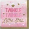 These light pink paper lunch napkins, featuring a "Twinkle Twinkle Little Star" message and pink, gold and white little stars, are perfect for girls birthday parties! Match to other Little Star articles and pink and gold accessories.