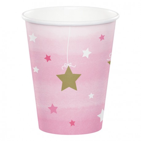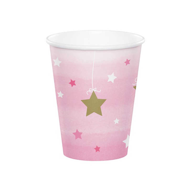 These light pink paper cups, featuring pink, gold and white little stars, are perfect for girls birthday parties! Match to other Little Star articles and pink and gold accessories.
