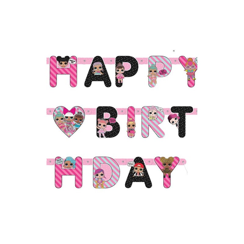 LOL Surprise Happy Birthday Banner for girls birthday parties! Combine with other LOL Surprise articles and decoration mostly pink and mint to create your party!