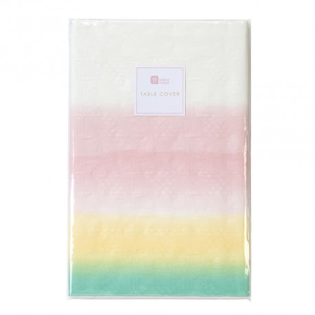 Pastel colors paper tablecover, printed on board with green, yellow and pink watercolors.