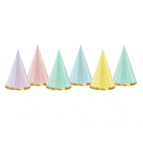 A lovely set of paper Party Hats in assorted pastel colors with details in golden foil. Perfectly matching to our Love Pastel party range!