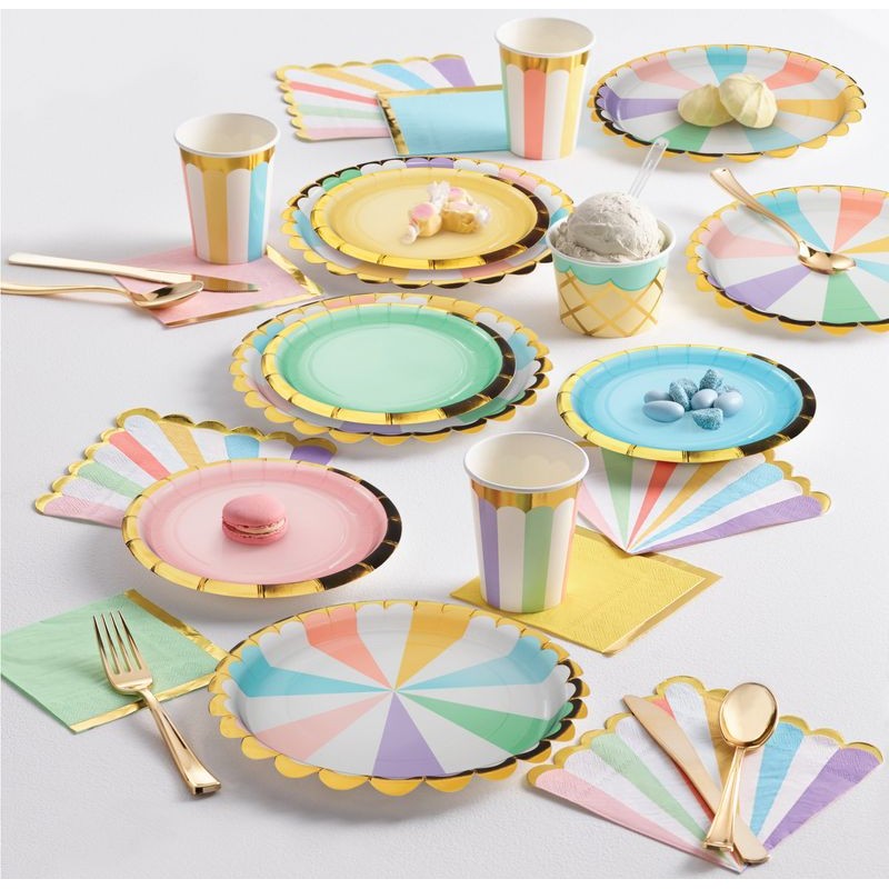 These pastel colors with details in gold foil shaped paper plates are perfect to many occasions! Pair them with other Love Pastel range articles for a super trendy and elegant decoration!