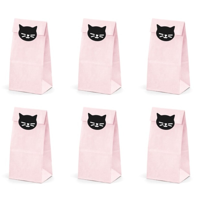 Nothing better than these lovely pink paper treat bags with black kitten stickers to thank your invitees with a little favor to remember your Meow party!