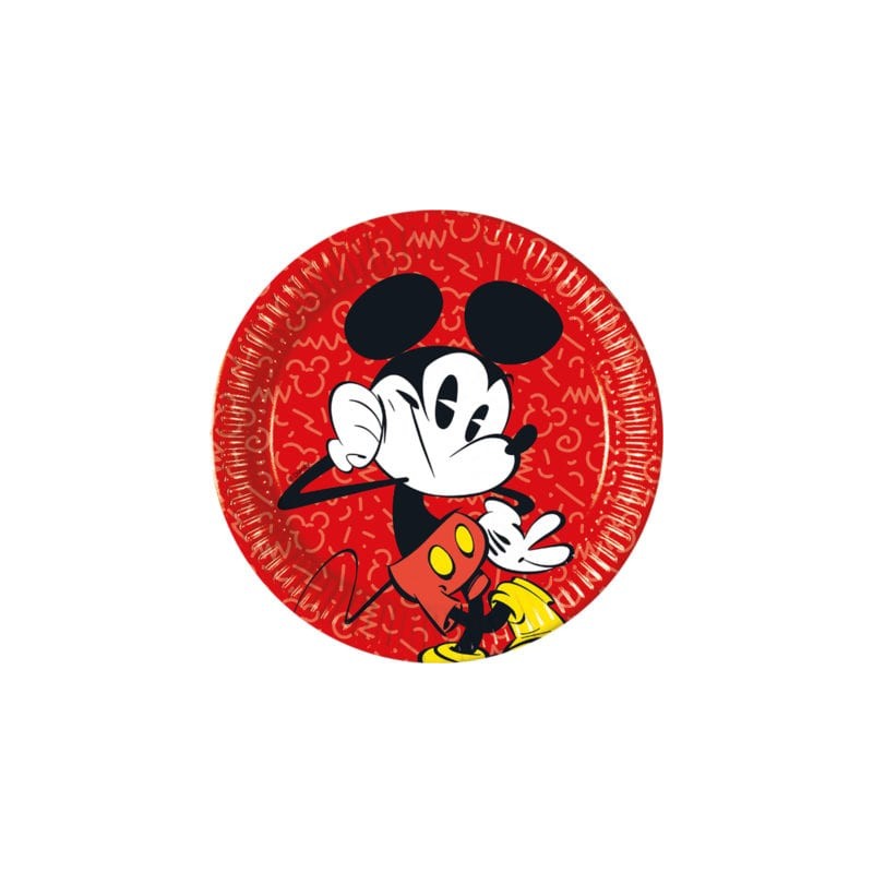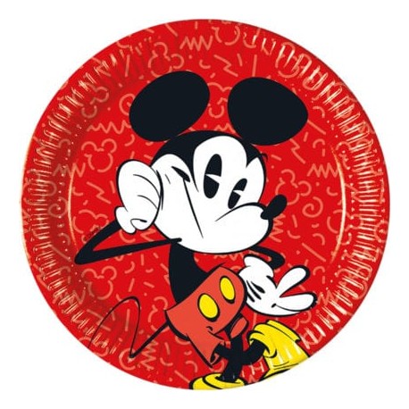 These brilliant red Mickey Super Cool paper plates are great for an original Mickey Mouse themed birthday party! With a fun and modern design Mickey Super Cool articles are great to be matched to red and yellow accessories and decoration!