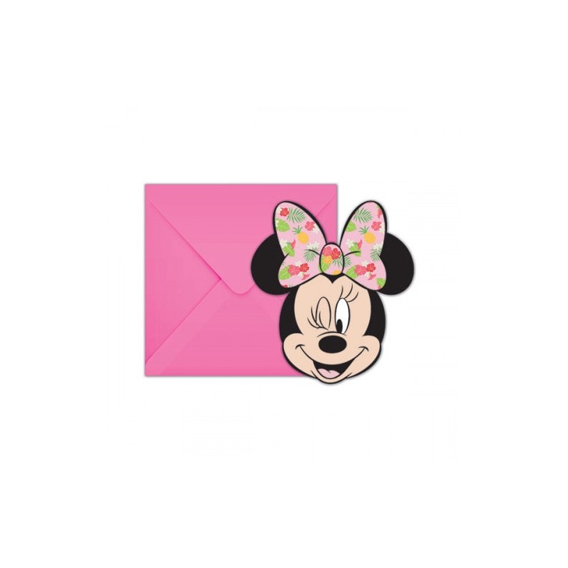 Minnie Tropical party invitations with envelops. Combine to other articles from the same range and accessories and light pink and mint solid colors to complete the decoration.