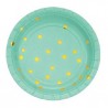 Mint green with golden foil dots paper dessert plates. Match to other mint and gold colored articles for a perfect decoration!