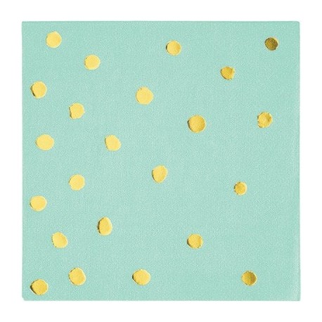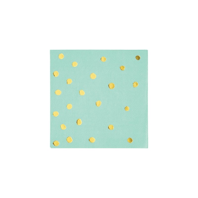 Mint green with golden foil dots paper beverage napkins. Match to other mint and gold colored articles for a perfect decoration!