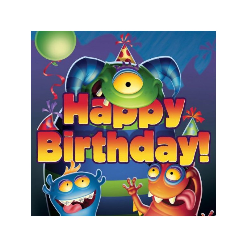 Monsters Party theme lunch napkins for kids birthday party. Combine with other Monster theme items, cutlery and balloons in blue, green and orange colors for a perfect decoration!