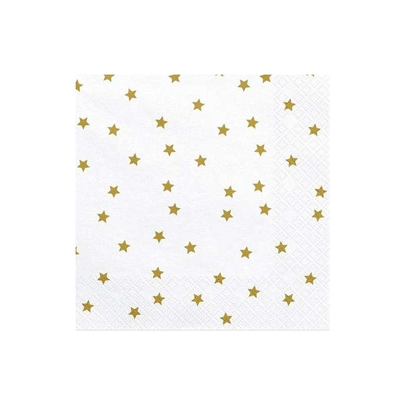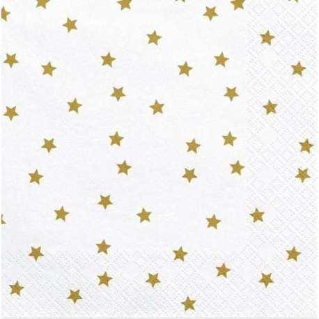 Adorable white and golden stars napkins. Match to other tableware and decoration in gold color to create your own decoration.