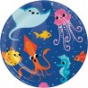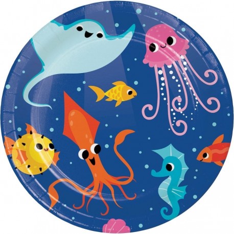 Sea animals themed paper dessert plates for kids birthday parties. Match to other Sea party range articles, accessories and decoration solid colors.