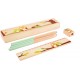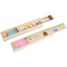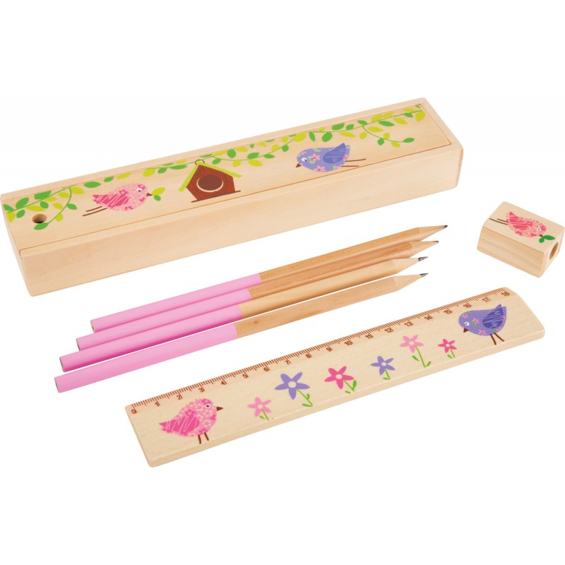 A wonderful wooden pencil case, complete with 4 pencils, a penknife and a 18 cm ruler, everything made of wood and lovely decorated in pastel pink or green. Just perfect as party going home favor!
