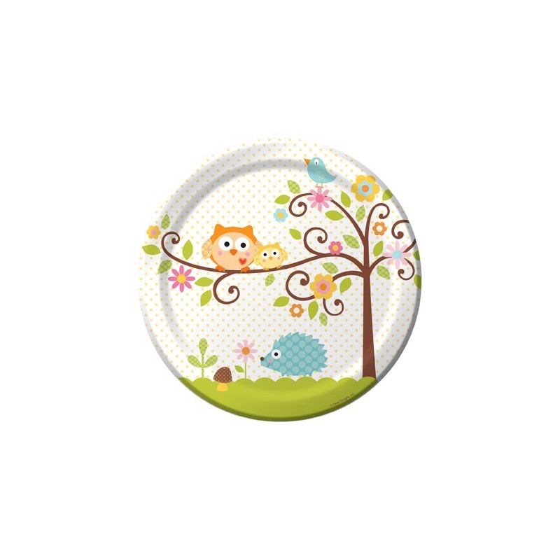 The owl is the star in this lovely coordinate, perfect to baby showers and first birthday parties. Combine these paper dinner plates with other Happi Tree items.