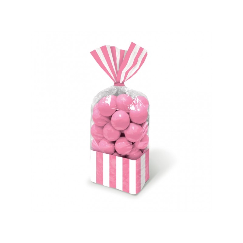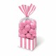 Striped Pink cellophane bags to be used as party bags on kids birthday parties. Includes twist ties for closure.
