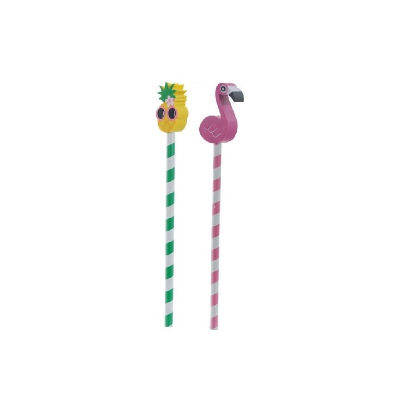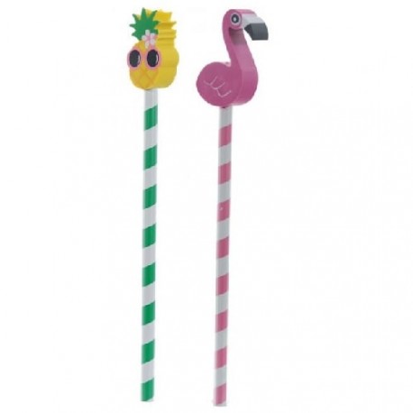 Set of 2 pencil with rubber flamingo and pineapple themed, super useful and adorable as going home favor, specially for Summer Parties! The wood pencil is decorated with stripes and the set is completed with a rubber.
