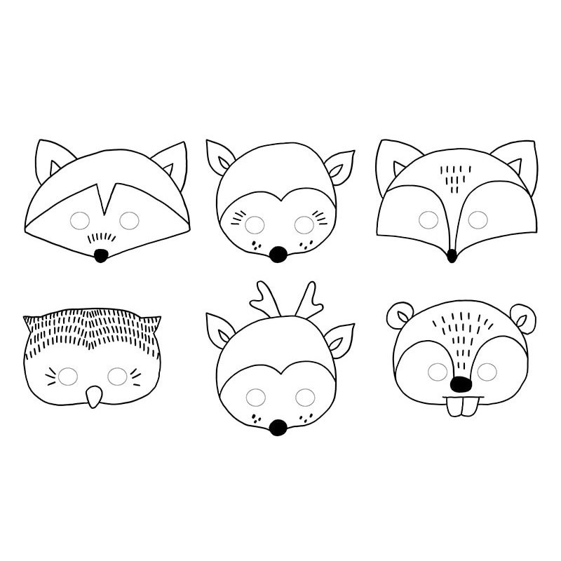 Fun is assured with this set of Woodland Animals coloring masks! Made in paper with an elastic band. Perfect as creative activity during the party and as going home favor, specially for Woodland themed parties!
