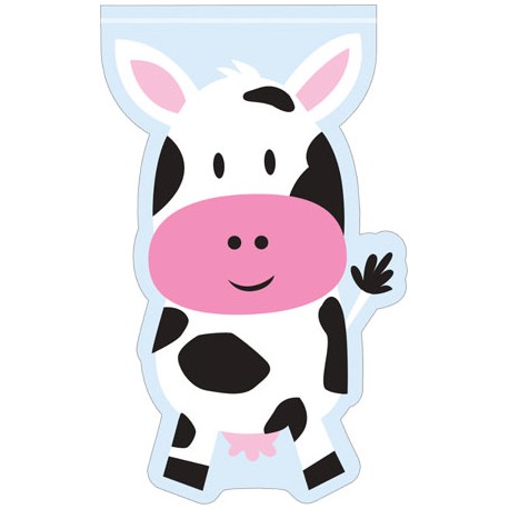 These super cute plastic treat bags with zip featuring a friendly cow are perfect to fill with candy or party favors and give to kids as favor after the Farm birthday party!
