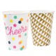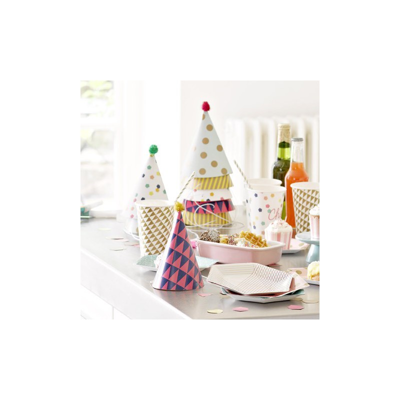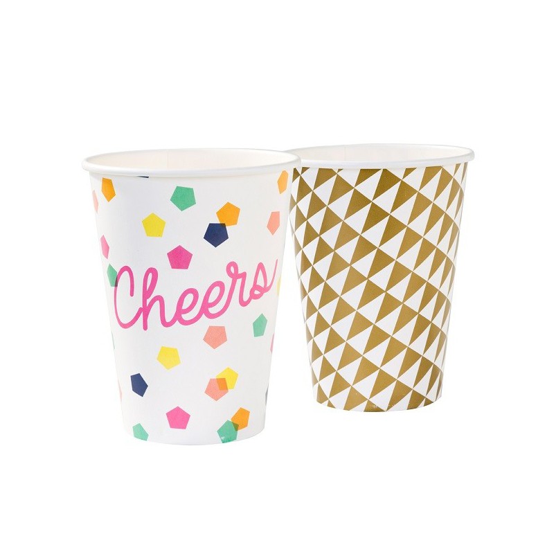 It's party time! This super trendy range is great to celebrate every special occasion. These paper cups in 2 different designs are larger than the normal, so ideal adults. Match with smaller cups for children, in the colurs you prefer.