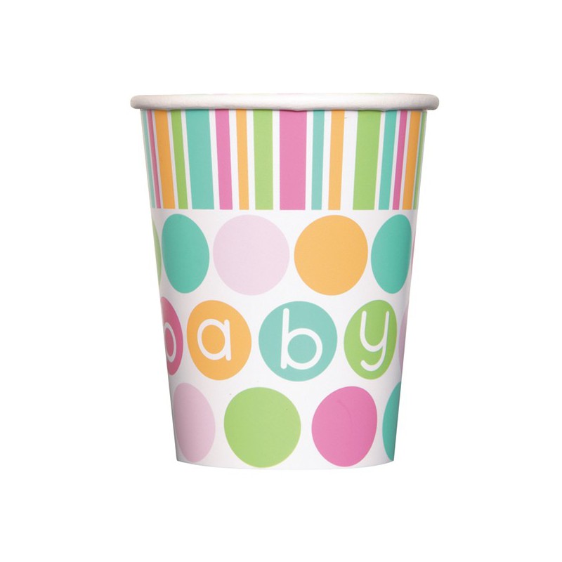 Paper Cups from the sweet Paste Baby Shower range, in pastel colors, polka dots and stripes.