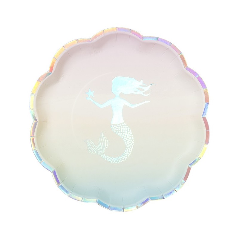 These stunning paper plates feature a wonderful iridescent Mermaid, great for a special Mermaids or Under the Sea themed party. Combine with other articles from Mermaid range for a perfect decoration!