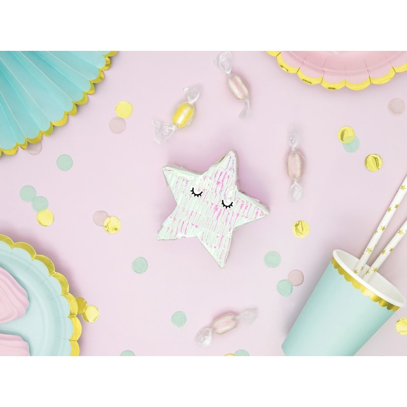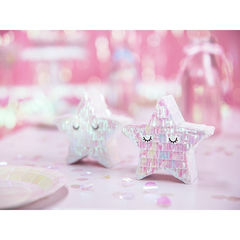 This mini pinata shaped like a star and decorated in iridescent paper is just an adorable party favor! Also perfect to decorate table, to hang a place card or to decorate Christmas tree! Fill it with goodies.